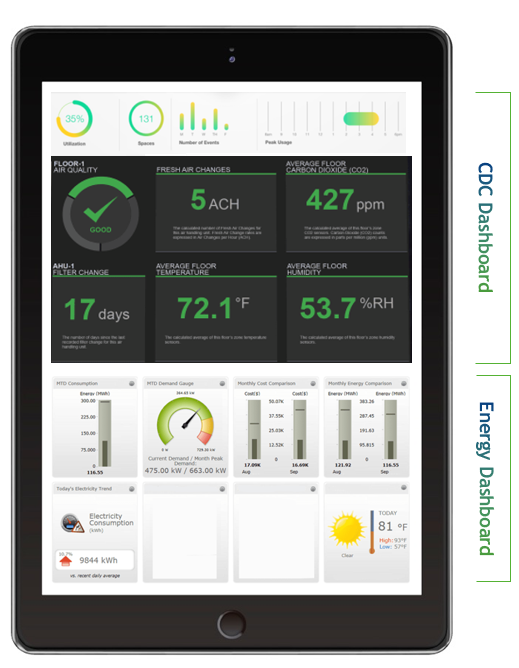 Smart building technologies have traditionally been employed for building automation, energy management, Heating, Ventilation and Air Conditioning (HVAC) control, security and access control, and communications. As buildings reopen and people return to in-person activities, smart building and Internet of Things (IoT) technologies play a key role in maintaining COVID-19 safe spaces. As part of this, smart building technologies are key to monitoring and managing safe IAQ levels and proving compliance with ASHRAE and CDC guidelines.