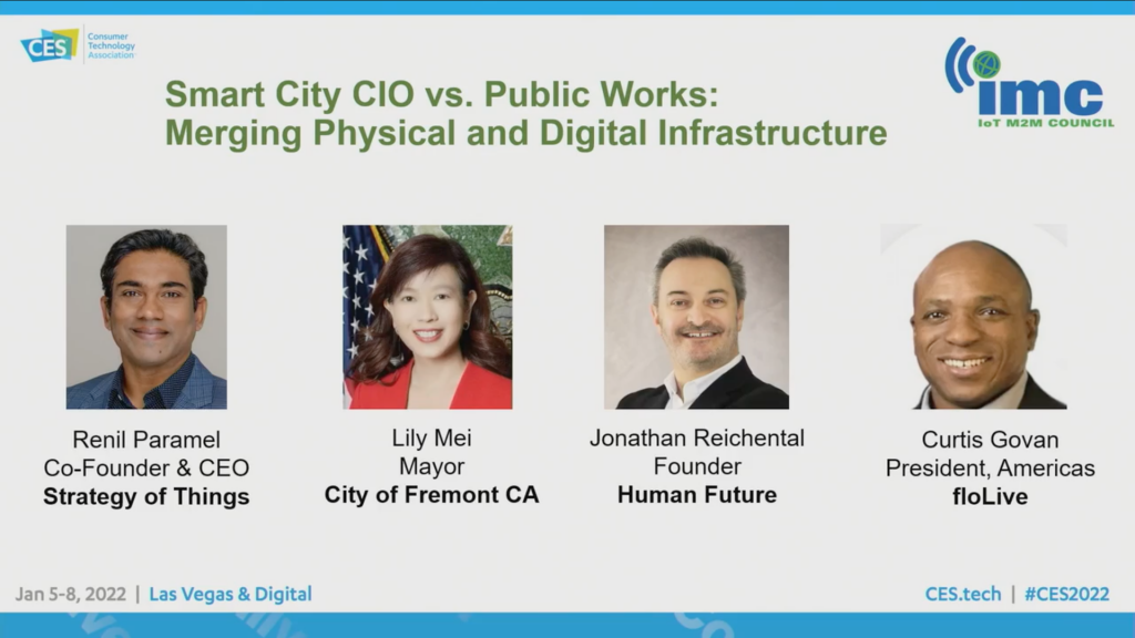 Listen to insights from the Honorable Lily Mei 高敘加, Mayor of the City of Fremont in Silicon Valley, Jonathan Reichental, Ph.D., a well known and respected smart city and innovation expert, and Curtis Govan, President, Americas at floLIVE, a provider of innovative connectivity solutions for telecommunications and IoT.