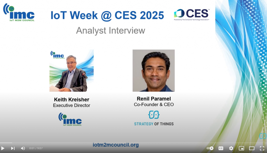 Artificial intelligence is critical to unlocking the value of the Internet of Things. The emergence of generative AI has created exciting and new ways for unlocking value with IoT solutions and systems. Renil Paramel, CEO of Strategy of Things, sat down with Keith Kreisher of the IoT M2M Council at the 2025 Consumer Electronics Show to discuss what generative AI means for the Internet of Things.